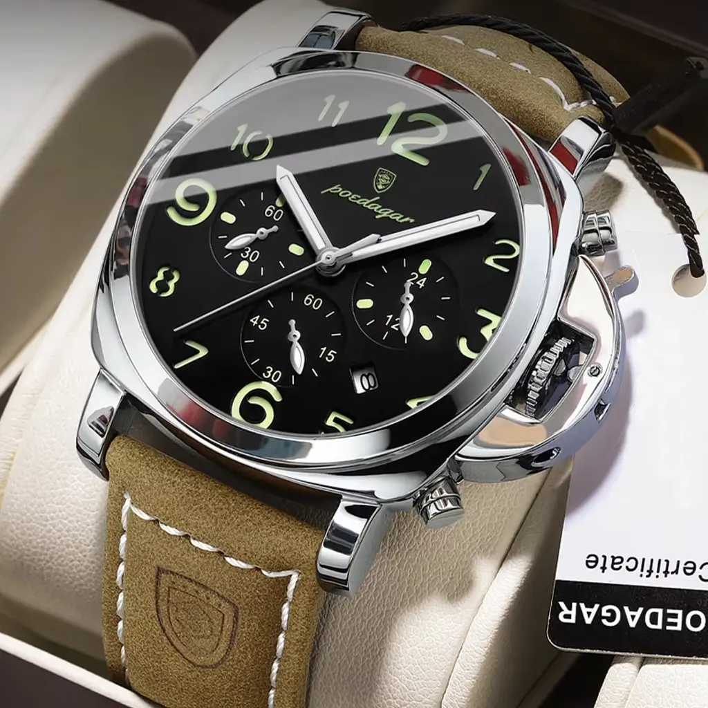 Тип механізму: Quartz, Водостійкість: 3 атм - омити руки, Функції: Система День-Ніч, секундомір, дата, Стиль: Класичний, Скло: Мінеральне, Матеріал: Метал, Тип: Чоловічі, Застібка: Класична, Товщина: 14 мм, Форма корпусу: Круглий, Матеріал ремін Особливості: Інструкція на російській мові, Вага, г: 85, Розміри, мм: 45х14, Колір корпусу: Сріблястий, Формат часу: 12 г, Індикація: Минути, секунди, години, Діаметр: 45 мм, Тип циферблату: Аналоговий (стрілочний), Ремінець/Закрив, Характеристики механізму: Японія, Гарантія: 12 місяців, Механізм: Кварцовий, Тип механізму: Quartz, Колір ремінця: Коричневий, Товщина: 14 мм, Вага, г: 85, Можливість зняти ремінець: Так, По діаметру годин: Середні, Довжина ремінця, см: 26 см, регулюється, 45х14, Ширина ремінця: 24 мм, Для чоловіків: Для чоловіків, Матеріал корпусу: Сталь, Фабрика збирання: Китай/Японія, Основний колір циферблату: Чорний, Вид індикації: Арабські цифри, Особливості циферблата: Центральна секундна стрілка, За країною механізму: З японським механізмом
