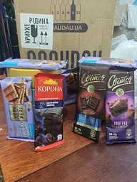 Шоколад ну дуже смачний! Рекомендую! Насичений шоколадний смак без зайвої гіркоти. Зверніть увагу. Шоколад з начинкою, а не суцільний чорний шоколад. Я цьому не придала значення, але ні краплі не шкодую, що обрала його. Обслуговування жахливе(((( Шоколад був запакований аби як. Лежав у коробці серед інших речей (вішалки, ніж) ніяк не зафіксований. Як наслідок деякі плитки шоколаду зламались.