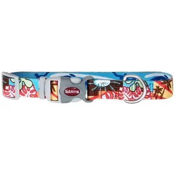 Sublime - серія стильної амуніції для собак, відмінною рисою якої є двосторонній малюнок - перегукуються кольори лицьової та виворітної сторін. Нашийник Coastal Sublime зручний у використанні та надійний завдяки використанню у його виробництві міцного нейлону. Фурнітура виконана з дуже якісного пластику, нашийник швидко одягається і знімається завдяки застібці-фастекс, а повзунок дозволить точно підігнати розмір. Збільшена ширина тасьми підкреслює яскравий дизайн виробу.