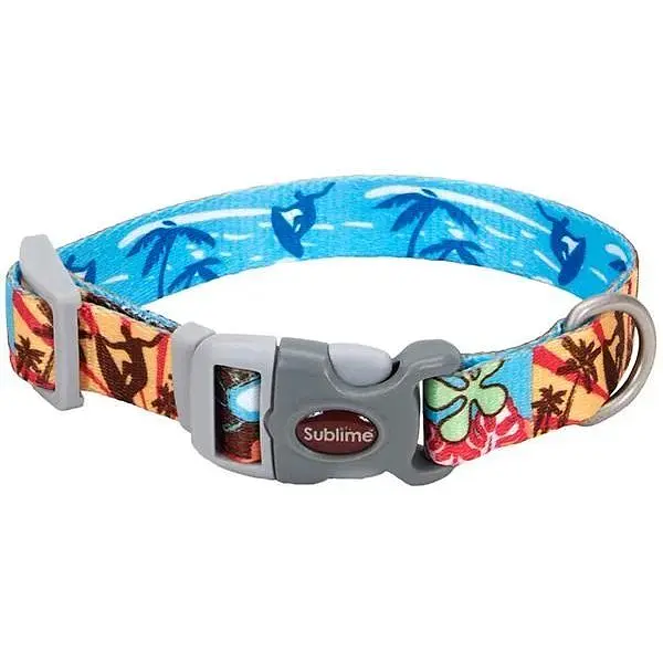 Sublime - серія стильної амуніції для собак, відмінною рисою якої є двосторонній малюнок - перегукуються кольори лицьової та виворітної сторін. Нашийник Coastal Sublime зручний у використанні та надійний завдяки використанню у його виробництві міцного нейлону. Фурнітура виконана з дуже якісного пластику, нашийник швидко одягається і знімається завдяки застібці-фастекс, а повзунок дозволить точно підігнати розмір. Збільшена ширина тасьми підкреслює яскравий дизайн виробу.