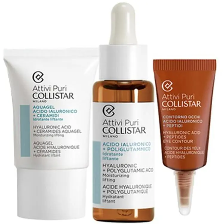 Face Cream: Aqua (Water), Glycerin, Dimethicone, Butylene Glycol, Cetearyl Alcohol, Caprylic/Capric Triglyceride, Sodium Hyaluronate, Ceteareth-20, Tocopheryl Acetate (Vitamin E), Panthenol, Phenoxyethanol, Ethylhexylglycerin, Fragrance (Parfum), Disodium EDTA.Face Concentrate: Aqua (Water), Glycerin, Butylene Glycol, Sodium Hyaluronate, Cetearyl Alcohol, Ceteareth-20, Tocopheryl Acetate (Vitamin E), Panthenol, Phenoxyethanol, Ethylhexylglycerin, Fragrance (Parfum), Disodium EDTA.Eye Concentrate: Aqua (Water), Glycerin, Butylene Glycol, Sodium Hyaluronate, Cetearyl Alcohol, Ceteareth-20, Tocopheryl Acetate (Vitamin E), Panthenol, Phenoxyethanol, Ethylhexylglycerin, Fragrance (Parfum), Disodium EDTA.