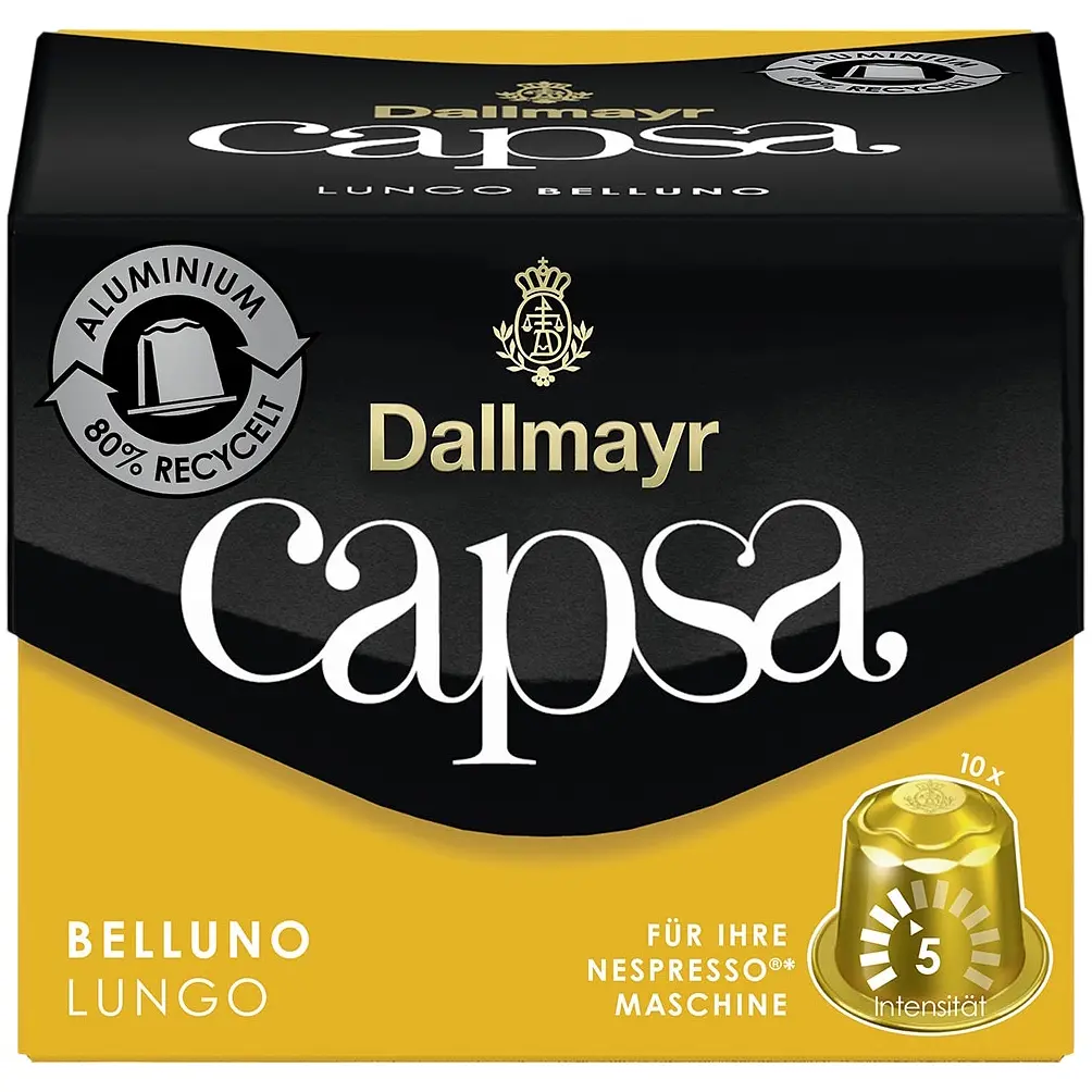 Кава в капсулах Dallmayr Lungo Belluno - оксамитово-м'яка, збалансована арабіка. Її яскравий, ароматний букет з присмаком ванілі в поєднанні з легкими квітковими й горіховими нотками збуджує смакові рецептори і дарує неповторні смакові відчуття. Ідеально підходить для приготування лунго.