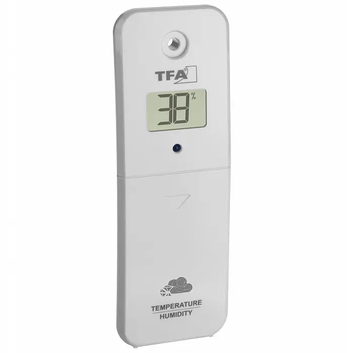Датчик можна використовувати як додатковий або замінний передавач для безпровідних метеостанцій TFA 35.8000 | 35.8001 | 35.8002 | 35.8003. Термогігродатчик відображає на цифровому дисплеї поточну зовнішню температуру та вологість або температуру та вологість у приміщенні, в залежності від місця розташування. Значення передаються безпровідним способом на базову станцію. Також датчик можна використовувати для контролю внутрішнього клімату у віддалених приміщеннях (гараж, підвал або горище). Датчик можна повісити на стіну всередині або зовні або навіть встановити на горизонтальній поверхні. Місце розташування має бути захищене від прямих сонячних променів. ФУНКЦІЇ Для безпровідної передачі температури та вологості Також для моніторингу мікроклімату у віддалених приміщеннях Дисплей з індикацією температури та вологості Частота передачі 868 МГц Дальність передачі до 100 м (відкритий простір) Корпус із захистом від опадів Знак якості TFA Продукція від TFA переконує у функціональності та дизайні.