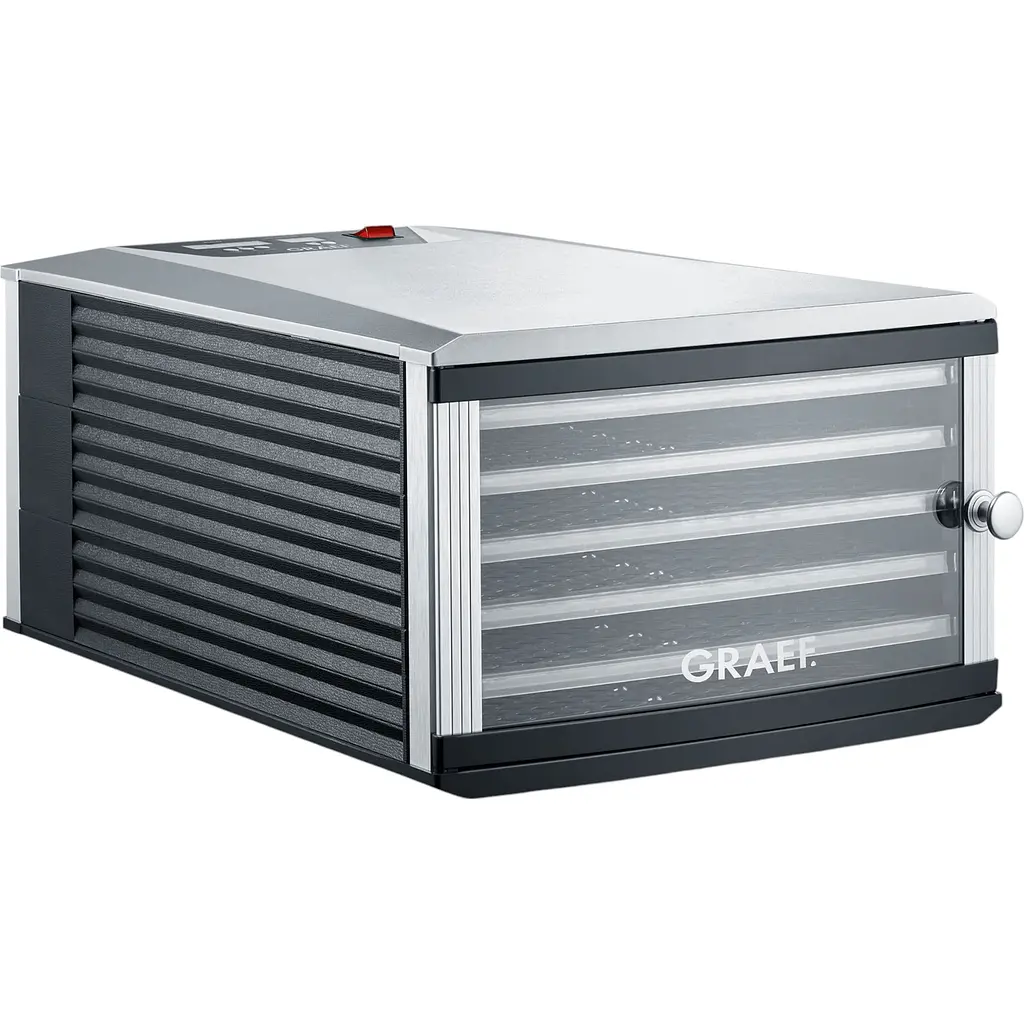 Дизайн. Конструкція висувної скриньки є ще однією ключовою перевагою дегідраторів Graef. Як і в духовці, деко, що додається, можна зручно висувати вперед, завантажувати та знову вставляти в дегідратор в різних положеннях (залежно від продуктів і кількості, що підлягає зневодненню). Лотки не містять BPA.
