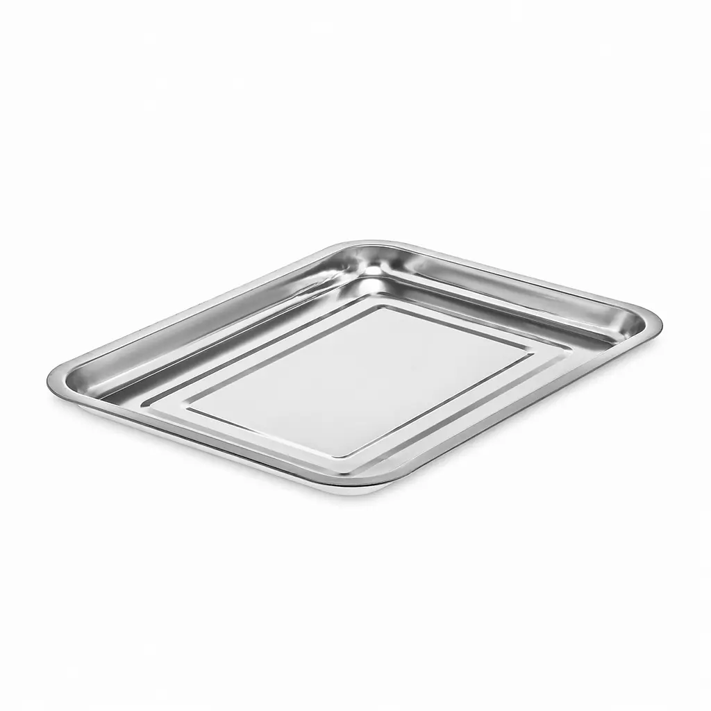 Лист із неіржавкої сталі — універсальний кухонний аксесуар, що ідеально підходить для приготування випічки, запікання м'яса, овочів та інших страв. Завдяки міцній конструкції та стійкості до пошкоджень, він забезпечить надійність і довговічність за регулярного використання. Матеріал не вбирає запахи, не вступає в реакцію з харчовими продуктами та не впливає на їхній смак, що робить його безпечним і гігієнічним рішенням для будь-якої кухні.