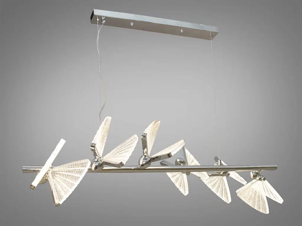 Цей підвісний світильник "Метелики" виражає свіжість та новаторство, що притаманні стилю нордік, доповнюючи простір дивовижною легкістю та витонченістю. Потужністю на 48 Вт, він оснащений світлодіодами, які не лише економно споживають енергію, але й забезпечують яскраве та чисте світло, роблячи цей підвіс ідеальним для різних приміщень. Люстра "Метелики" стане виразним акцентом у великій залі, де її вишукані форми метеликів, ніби замерзлі в польоті, зможуть привернути захоплені погляди гостей та стати предметом розмов. В кабінеті, цей підвіс додасть атмосфері легкість та ненав'язливу креативність, сприяючи робочий настрій та творчий потік думок. У спальні світлодіодний підвіс "Метелики" внесе відчуття спокою та гармонії, його ніжне світло заспокоює та налаштовує на релаксацію перед сном. Для дитячої кімнати така люстра стане чарівною деталлю, яка надихне на мрії та фантазії, завдяки своєму дизайну, що нагадує казку.