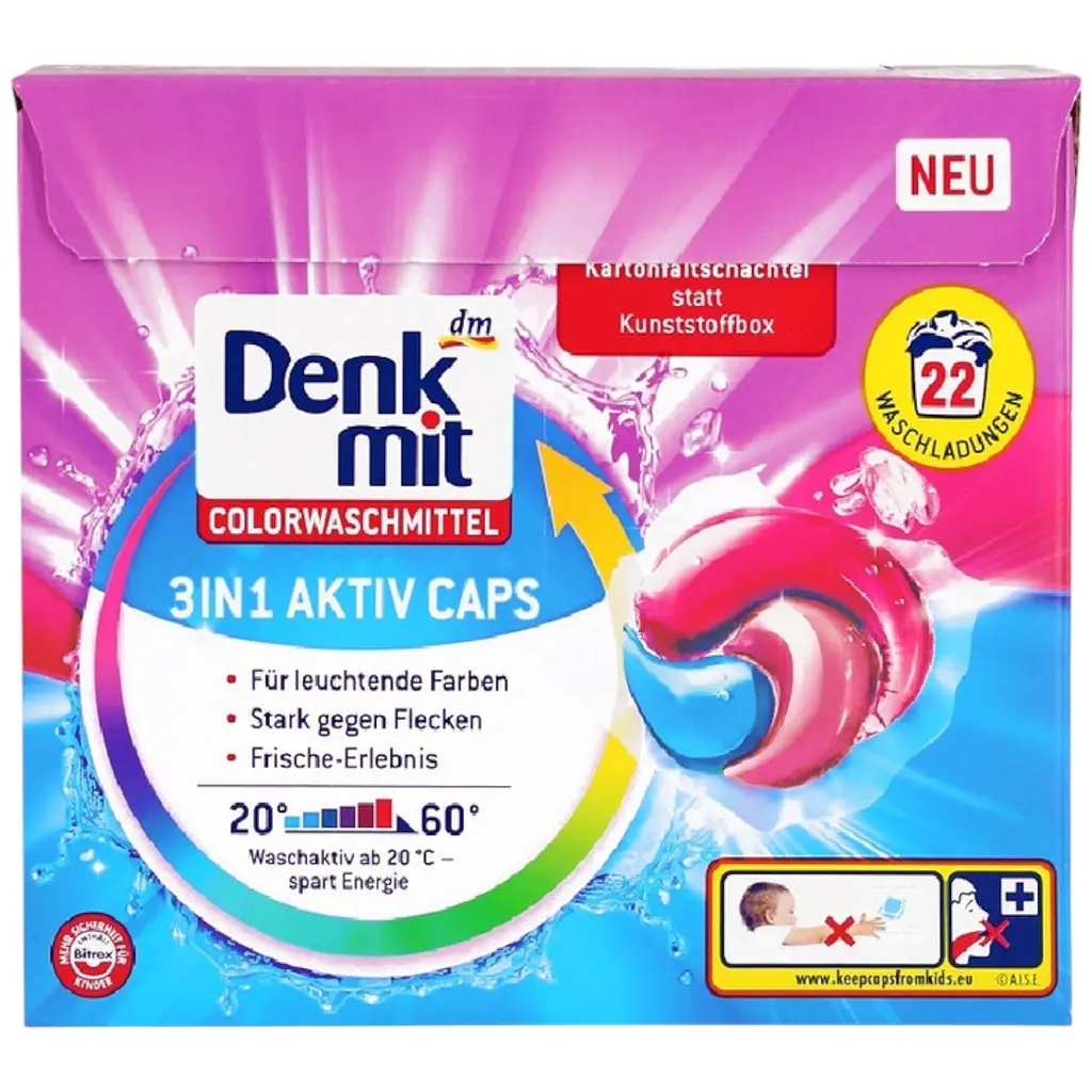 Гель-капсули для прання Denkmit 3 в 1 Aktiv Caps забезпечують ефективне очищення кольорової білизни, захищаючи кольори та надаючи тканинам свіжість і чистоту. Потужна формула цих капсул дозволяє видаляти навіть складні плями, одночасно дбаючи про довкілля та вашу пральну машину. Вони дбайливо захищають кольори від вигоряння та надають приємний аромат після кожного прання.