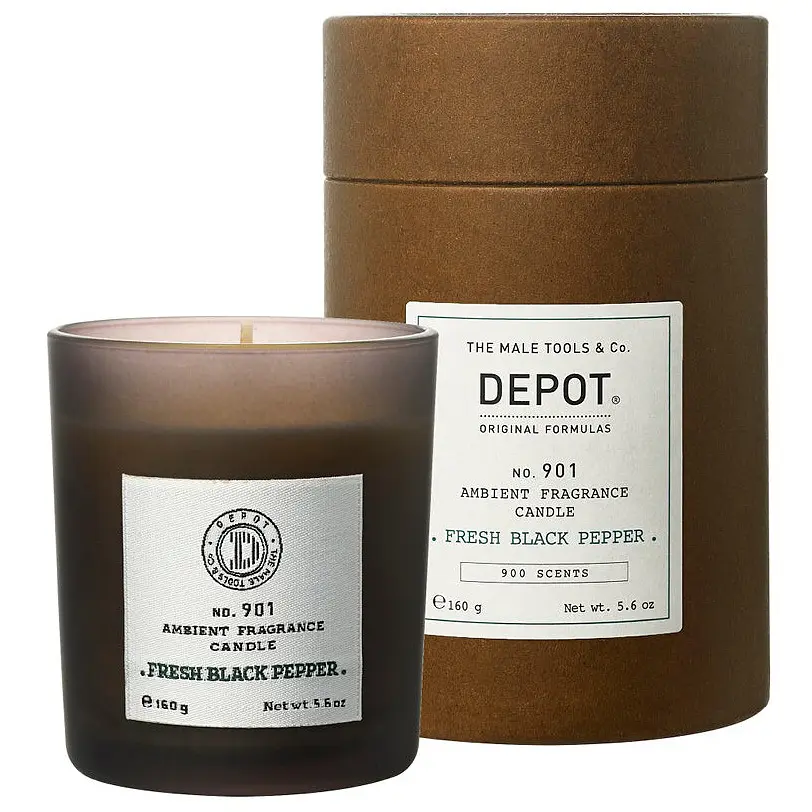 Свічка ароматизована Depot No.901 Свіжий чорний перець 160 гр – це динамічний та стильний аксесуар для дому від професійного італійського бренду Depot, що дарує заряд бадьорості. Композиція «Fresh Black Pepper» належить до групи свіжих, пряних та деревних ароматів. Вона інтригує контрастним поєднанням пікантної гостроти перцю з легкими квітковими та цитрусовими відтінками, створюючи атмосферу енергії, ясності думок та сучасної витонченості.