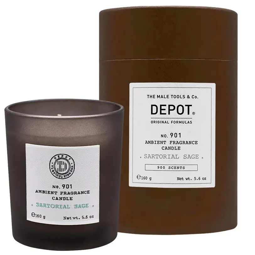 Свічка ароматизована Depot No.901 Вишукана шавлія 160 гр – це стильний елемент інтер'єрного декору від професійного італійського бренду Depot, що втілює в собі сучасну елегантність та чоловічий шарм. Композиція «Sartorial Sage» належить до групи східних, ароматичних та деревних ароматів. Вона створює атмосферу впевненості, спокою та витонченості, перетворюючи простір на місце сили та естетичної насолоди.