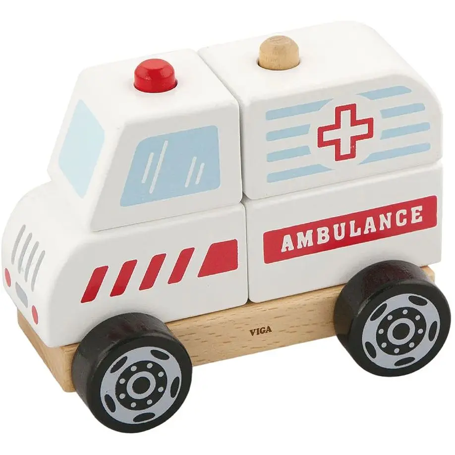 Дерев'яна пірамідка від Viga Toys Машина швидкої допомоги відповідає стандартам якості дитячих іграшок EN71 і ASTM.