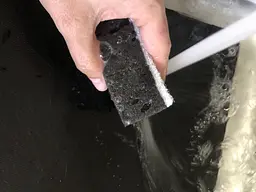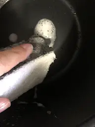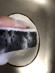 реально добре піняться навіть з невеликою кількістю миючого засобу, тому витрата менша. Чорна сторона більш жорстка, підходить для каструль чи металевих поверхонь, а біла – м’якша, не подряпала керамічну сковорідку
