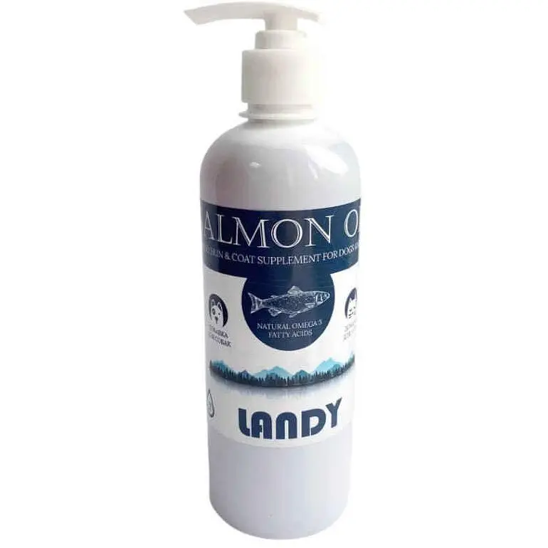 Особливості та переваги: забезпечує здорову шкіру та блискучу шерсть; підвищує імунітет; профілактика захворювань суглобів; стимулює мозкову діяльність; незамінна для вагітних та тварин у період лактації. Склад: Олія атлантичного лосося Спосіб застосування: залежно від реакції тварини, можна додавати в їжу або давати окремо; вводити в раціон поступово, не менше тижня; курс прийому 2-4 тижні; мінімальна перерва 1 місяць. Дозування: 1 чайна ложка (5 г) на 10 кг маси тварини. Фасування: 100 мл, 500 мл Виробник: Landy, SIA Reneta, Латвія