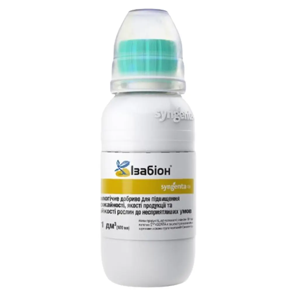 Добриво органічне Syngenta Ізабіон 100 мл (водний розчин) — комплексне органічне добриво для стимуляції росту та розвитку рослин. Забезпечує додаткове джерело фітогормонів та мікроелементів, підвищує стійкість рослин до стресових умов, покращує кореневу систему та якість врожаю.
