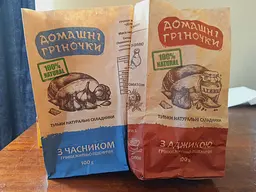 Смачні грінки завжди їх купуємо, правда ціна трохи завищена.