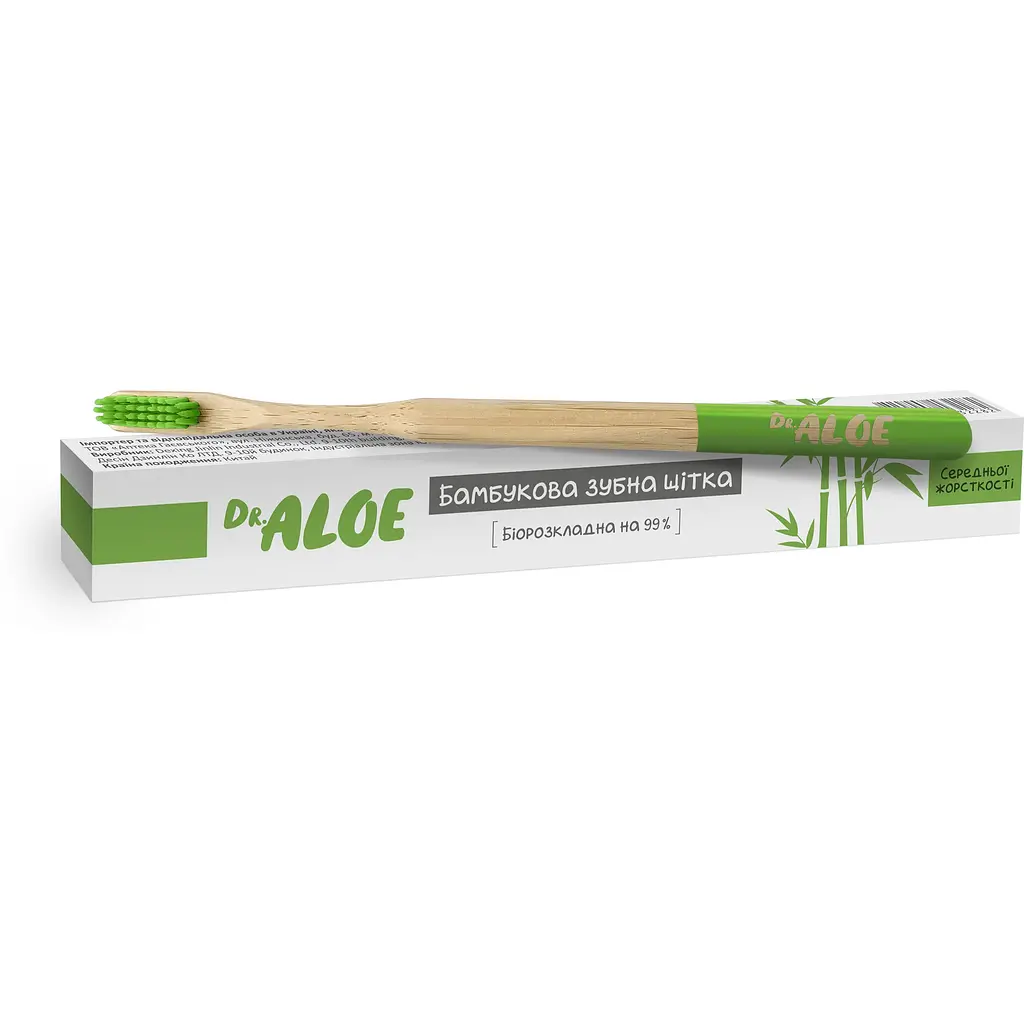 Для догляду за щіткою рекомендується зберігати її в сухому місці, щоб уникнути накопичення вологи, і замінювати кожні 2-3 місяці, як і будь-яку іншу зубну щітку. Dr. Aloe бамбукова - це вибір тих, хто прагне поєднати турботу про здоров’я зубів із відповідальним ставленням до планети.