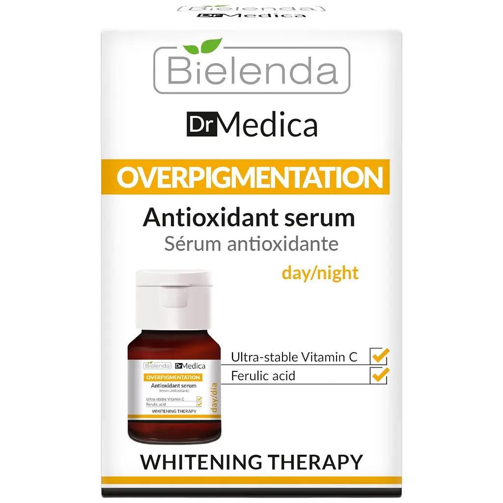 Антиоксидантна сироватка проти надмірної пігментації вирівнює тон шкіри та зменшує видимість пігментних плям. Вона містить компоненти, які мають потужні антиоксидантні та депігментуючі властивості. Регулярне використання сироватки надає шкірі здорового вигляду, освітлюючи плями та надаючи сяйво.