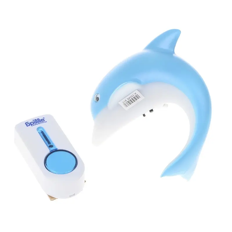Оригінальний бездротової дверний дзвінок у вигляді дельфіна DB-11 не тільки сповістить вас про прихід довгоочікуваних або випадкових гостей, а й прикрасить інтер'єр вашої міської квартири або заміського будинку. Послужить він також і як нічник. Комплект складається з двох частин – передавача (кнопки) і приймача (дзвінка). Виготовлені вони з пластику. Даний дзвінок бездротовий, з кнопкою дзвінка його з'єднують радіохвилі. Це дозволяє легко і швидко встановити електричний прилад без прокладання проводів і свердління стін. Передавач встановлюють зовні біля дверей за допомогою м'якої липучки. Кнопку дзвінка не рекомендують встановлювати на відкритих ділянках, бо вона не має спеціального захисту IP, волога і дощ можуть привести до виходу її з ладу. Сам же дзвінок-дельфін підключають до мережі 220 В, потужність його становить 2 Вт. У включеному стані дельфін світиться, а при натисканні на кнопку дзвінка і перемиканні мелодій – блимає. Встановити дзвінок можна в будь-якій кімнаті, головне – наявність розетки. Кнопка і дзвінок працюють на відстані до 100 метрів. Про прихід гостей дзвінок повідомляє звуком і світлом. Динамічний гучномовець видає 32 гучні і дзвінкі мелодії. Завдяки тому, що він світиться, є зручним у використанні для глухих і людей похилого віку. Для роботи передавача (кнопки) необхідно використовувати лужну батарейку типу А23 12 В. В статичному стані не споживає електроенергію, батарейки можуть прослужити рік, якщо дзвінком користуватися приблизно 20 раз в день. З таким дзвінком прихід гостей перетвориться на свято.