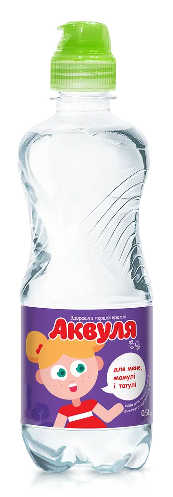 Дитяча вода "Аквуля" з кришкою-непроливайкою, 0,5 л — зручна для малюків, безпечна та якісна. Чиста вода, спеціально підходить для дітей. Пляшка з непроливайкою — ідеальна для прогулянок і подорожей.