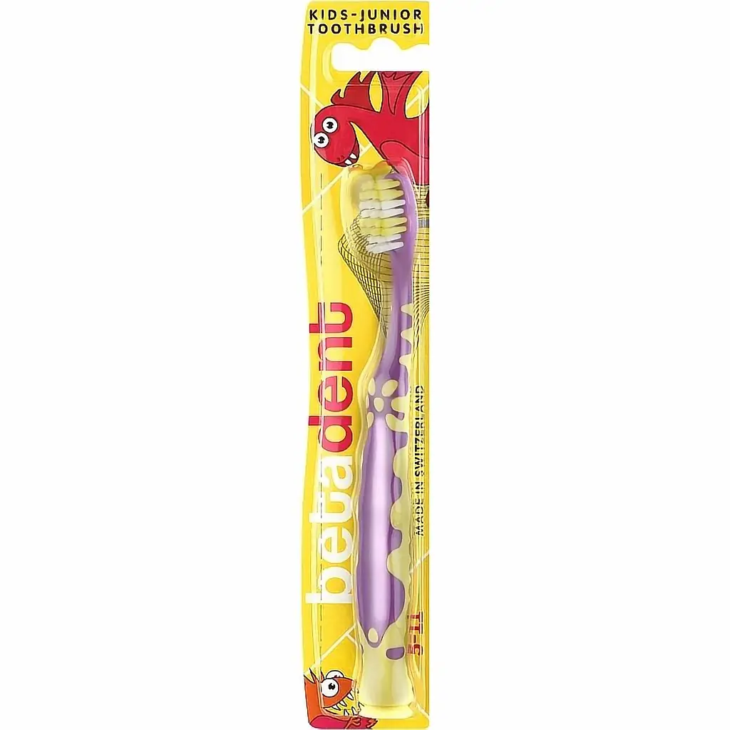 Дитяча зубна щітка Betadent Kids-Junior 5-11 років із компактною головкою вирізняється яскравим дизайном, який привертає увагу малюка й зацікавить його проводити гігієнічний ритуал.