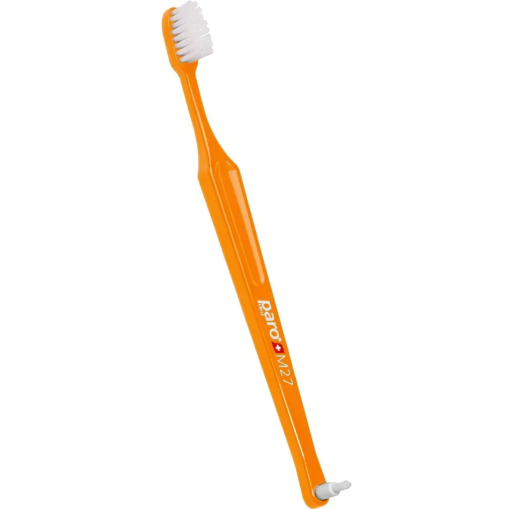 Дитяча зубна щітка Paro Swiss M27 з монопучковою насадкою має тонку шийку й унікальну довгу ручку, що гарантує правильне позиціонування та використання.