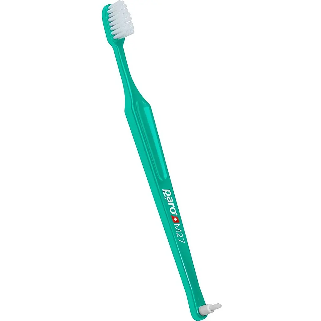 Дитяча зубна щітка Paro Swiss M27 з монопучковою насадкою має тонку шийку й унікальну довгу ручку, що гарантує правильне позиціонування та використання.