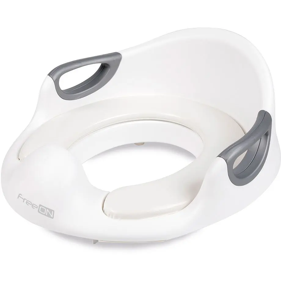 Сидіння для унітазу з вищою спинкою, ручками і м'якою знімною подушкою, що забезпечує дитині безпечніше і комфортніше користування туалетом.