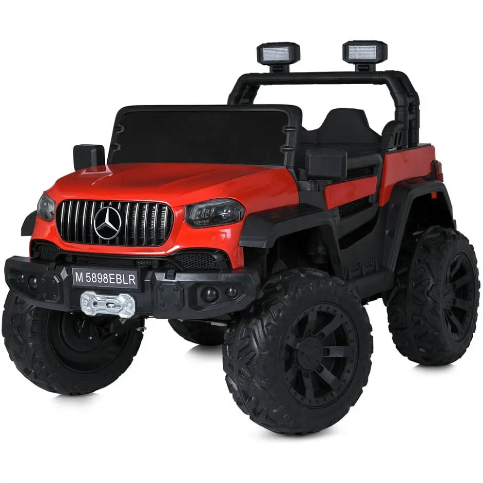 Артикул M 5898EBLR Бренд NO TM / Mercedes-Benz Тип джип Розміри товару довжина 125см ширина по дзеркалах/ колесам 82см висота 84см вага 25,25кг відстань від сидіння до педалей 30см Допустиме навантаження За вагою до 30кг За віком від 3-8 років Мотор Кількість/V/RPM 4*25W / 12V / RPM17000 Батарея Кількість/V/AH 12V12AH Індикатор батареї + Заряджання V/mA 12V/1000mA Час на зарядку 9-10год Індикатор заряджання + Старт Старт з кнопки Звук під час старту + Плавний старт у звичайному режимі + Швидкість км/год 5км/год Кількість швидкостей на панелі/на пульті 1/3 Педаль газу + Педаль-гальмо - Світло Фари Передні Підсвічування - Кнопка вмик/вимик світла + Звук Музика MP3+USB, AUX Карта пам'яті + Сигнал на кермі BLUETOOTH + Управління Пульт керування 2,4G(STOP BUTTON) App(додаток) + Рух вперед/назад кнопка Сидіння кількість місць 1 Ремені безпеки 2-х точкові Матеріал екошкіра Ширина посадкового місця 45см Колеса Матеріал EVA Розмір передніх коліс/дисків 34см/23см Розмір задніх коліс/дисків 34см/23см Простий монтаж + Корпус Матеріал пластик Дах - Амортизатори Передні + Задні + Додаткові функції Двері відчин. + Демо-режим + Бат.ручка - Дод. Коліщатка - Кондиціонер - Килимок - Причіп - Додаткові елементи Картрідер SD/TF карт, багажник позаду КОРОБКА Брутто/Розмір 29,25кг/127-67,5-45см Кількість шарів 5 Наявність кольорового постера - Колір картону коричневий