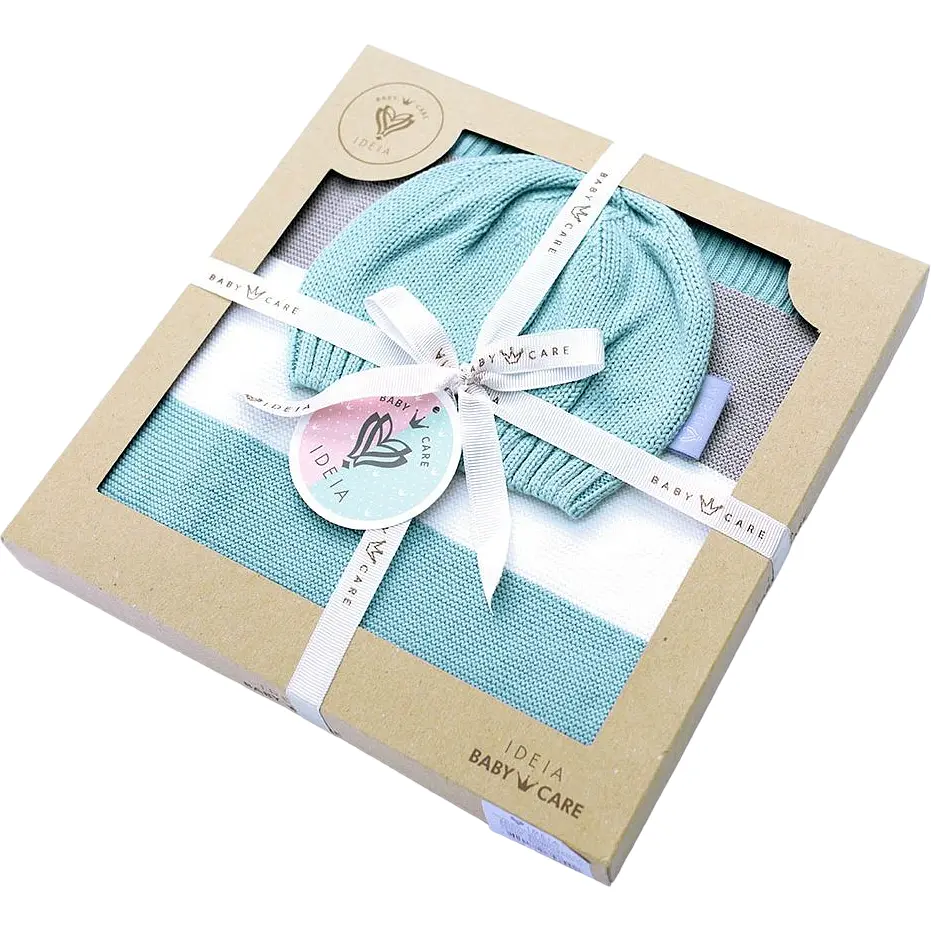Відчуйте м'якість і тепло преміум бавовняного трикотажного набору Ideia, що ідеально підходить для ніжної шкіри вашого малюка. Цей елегантно розроблений набір містить м'яку в'язану ковдру і чарівну шапочку, створену для забезпечення максимального комфорту вашої дитини.