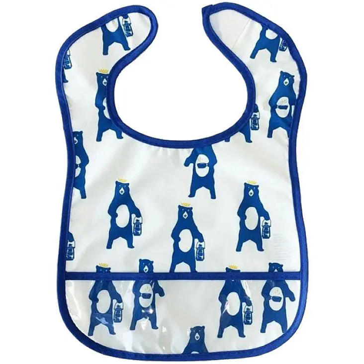 Слинявчик легко одягається та знімається завдяки зручній липучці, яка дозволяє регулювати обхват шиї. Матеріал простий у догляді — його легко протерти або помити після використання.
