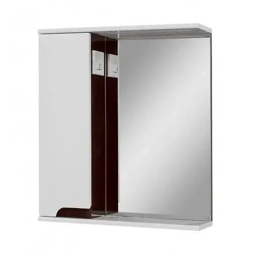 Дзеркало ліве 70 см венге, габарити (ВхШхГ): 730х700х166 мм, з LED підсвічуванням, оснащений дверцятами, а всередині дві скляні полички. Корпус виконаний з ламінованого ДСП в кольорі венге, має додаткове лакове глянсове покриття. Фасад складається з білої лицьовій панелі, яка виконана з МДФ - грунтована, пофарбована, а поверх покрита лаком з високим ступенем блиску. Можлива комплектація тумбою і пеналом.