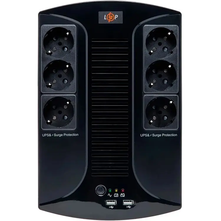 Джерело безперебійного живлення (ДБЖ) LogicPower 650VA-6PS являє собою лінійно-інтерактивне джерело резервного живлення з апроксимованою синусоїдою, яке стабілізує напругу в мережі і захищає обладнання від перевантажень і коротких замикань. ДБЖ потужністю 455 Вт призначений для захисту побутової, офісної та промислової техніки від стрибків напруги, коротких замикань, перевантажень, розрядів і надлишкового заряду батарей. При відключенні електромережі всі 6 розеток продовжують працювати від акумуляторної батареї, забезпечуючи безперебійне живлення підключених пристроїв. Перехід на автономний режим відбувається автоматично за 4–6 мс, що дозволяє зберегти стабільну роботу обладнання та підтримувати його живлення протягом 10–15 хвилин.