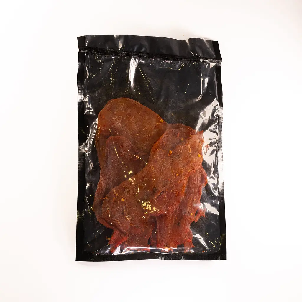 Сушене м’ясо курки зі смаком паприки чилі – це м’ясні чіпси, які отримали свій смак завдяки спеціальному процесу підготовки та спеціям. Приємна текстура та помірна солоність роблять ці курячі чіпси універсальним м’ясним снеком. Цей протеїновий перекус чудово підійде для тих, хто шукає здорові снеки.