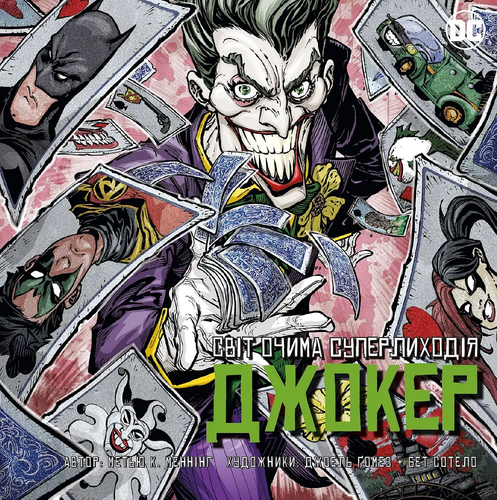Увійдіть до збоченого світу Джокера, де Король Комедійного Злочину вивергне на вас свої неврівноважені погляди!У цьому психотичному зізнанні він розкриє свої божевільні погляди на низку тем, включно з вибором посіпак, найкращим способом викрасти супергероя і мистецтвом подачі убивчого жарту. "Світ очима Джокера" - це страхітлива подорож всередину свідомості невиправного суперлиходія. Ця книжка з доданими матеріалами, що включають флаєр на перший гумористичний виступ Джокера, рецепт джокер-газу, а також стразітливо-розважальне "Колесо мертвих Робінів", дає читачеві незрівнянний огляд навіженого світу Блазня Ненависті.