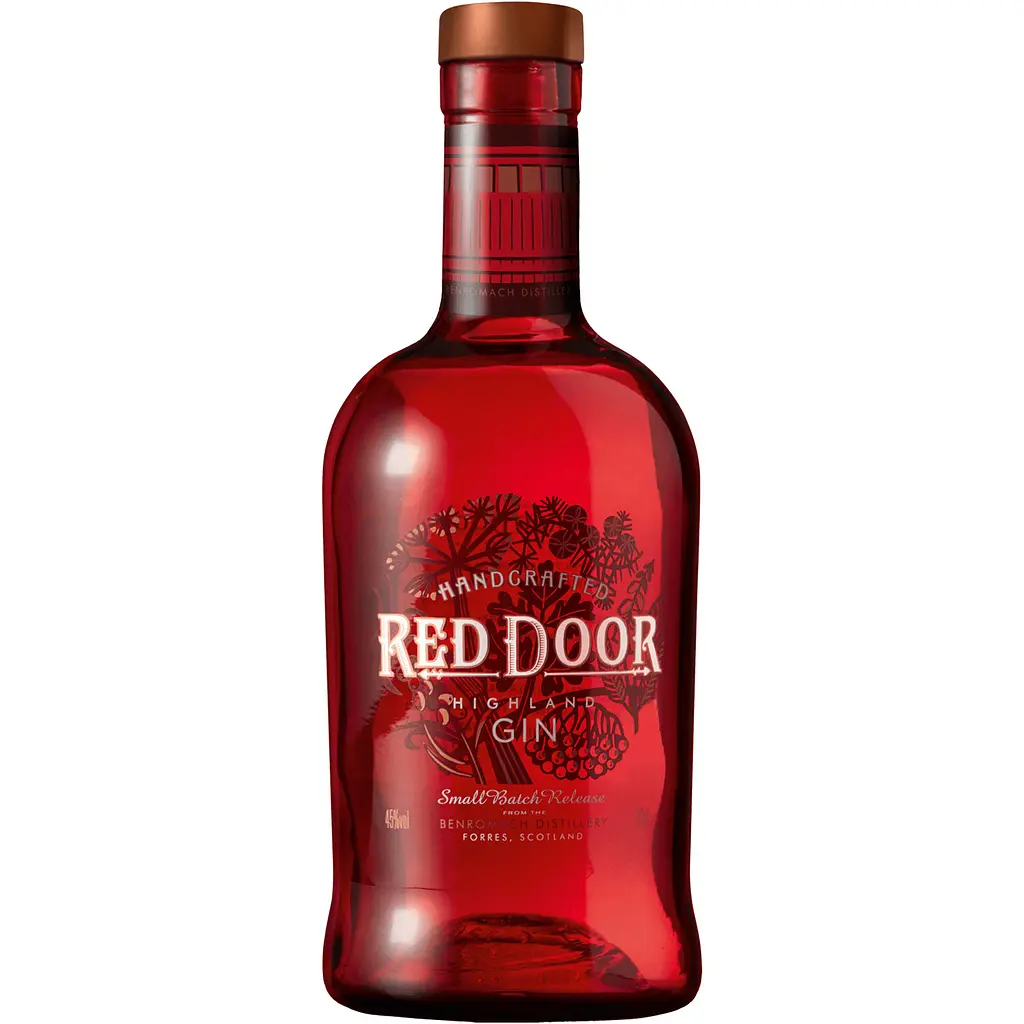 Легенда: Red Door Highland Gin отримав свою назву на честь червоних дверей на заводі Benromach Distillery, які є символом гостинності та відкриття нових можливостей