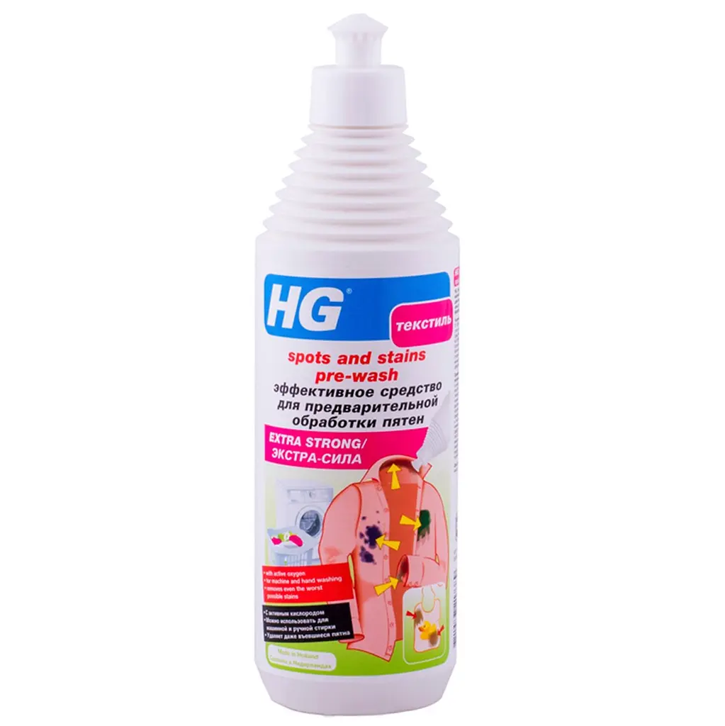 Ефективний засіб для попередньої обробки плям HG (ЕйчДжі) легко виводить навіть найскладніші плями від кави, чаю, червоного вина, землі, трави і т.п.