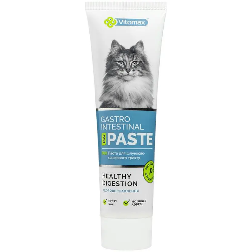 ОПИС ЕКО ПАСТА покращує роботу шлунково-кишкового тракту котів, нормалізує обмін речовин та очищає організм. За допомогою рослинних компонентів, що входять до складу засобу, покращується робота не тільки травної системи, а й усього організму в цілому. СКЛАД Рослинні екстракти, фітокомплекс рослин, природні мінерали, біологічно активні речовини (L-карнітин, таурин), пробіотики, кора в'яза, вітамінно-мінеральний комплекс, олії, бета-глюкан, жири, рослинна клітковина, дріжджі, допоміжні речовини. ПОКАЗАННЯ ЕКО ПАСТА для шлунково-кишкового тракту котів застосовується з метою: - профілактики захворювань системи травлення; - нормалізації обміну речовин. При вживанні пасти налагоджується процес перетравлення корму та його засвоюваність, нормалізується просування харчових мас по травному каналу, встановлюється баланс мікрофлори у кишечнику, поліпшується робота всіх систем організму, відбувається його очищення та підвищуються захисні сили. Добова норма: 4-5 см пасти (1 см = 0,5 г). Рекомендовано застосовувати пасту щодня протягом 1 місяця. ЗАСТЕРЕЖЕННЯ Застосовувати кошенятам віком від 10 тижнів. Термін придатності: 2 роки.