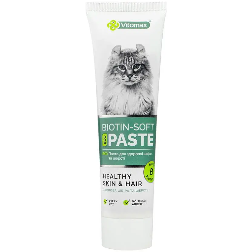 ОПИС Шерсть та шкіра виконують ряд значущих функцій, тому їх стан важливий для підтримки здоров'я тварини. Вживання пасти з натуральними компонентами сприяє не тільки підвищенню імунітету, але й покращенню стану шкіри та шерсті. СКЛАД Рослинні екстракти, великий вміст біотину та рибофлавіну (В2), пробіотики, таурин, вітамінно-мінеральний комплекс, пантотенова кислота, олії, жири, рослинна клітковина, дріжджі, допоміжні речовини. ПОКАЗАННЯ ЕКО ПАСТА для здорової шкіри та шерсті котів застосовується з метою: - скорочення терміну линьки; - підсилення блиску шерсті; - сприяє зміцненню кігтів та загоєнню дрібних ран шкіри. Також відбувається загальне зміцнення організму, підвищується його резистентність, прискорюється регенерація шкіри та ріст шерсті, зменшується її випадіння. Добова норма 4-5 см пасти (1 см = 0,5 г). Рекомендується застосовувати пасту щодня протягом 1 місяця. ЗАСТЕРЕЖЕННЯ Застосовувати кошенятам віком від 10 тижнів. Термін придатності: 2 роки.