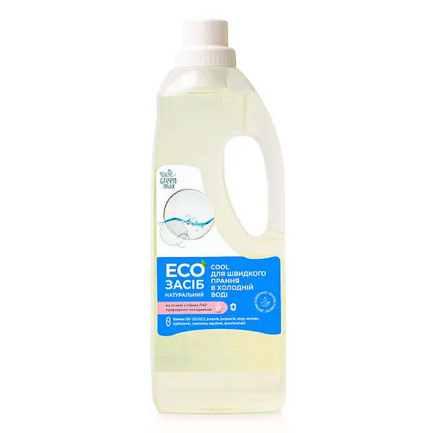 Зустрічайте довгоочікувану новинку бренду Green Max, яка діє максимально ефективно в холодній воді - Якість натуральний Сool для швидкого прання в холодній воді!