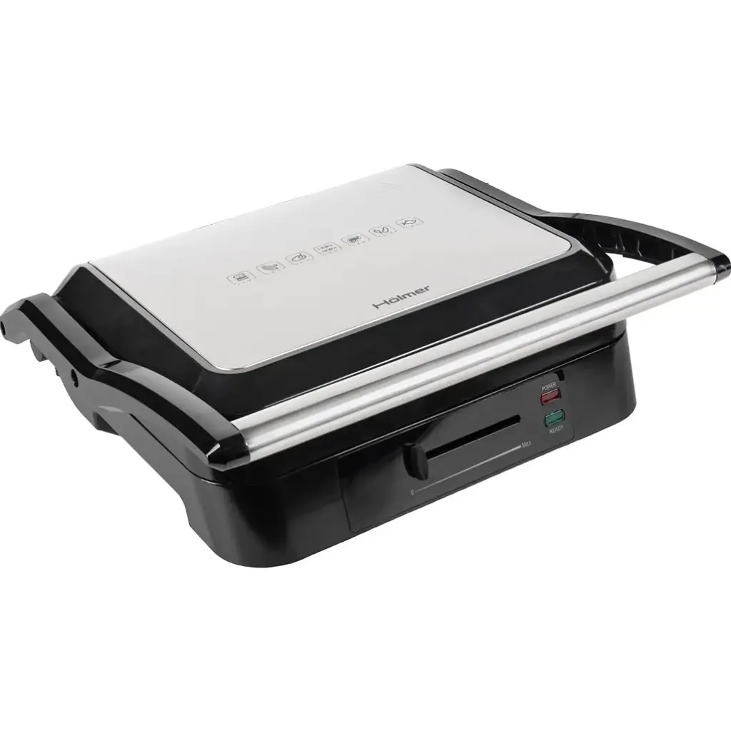 З контактним грилем Hölmer HCG-20R легко готувати як м'ясні, так і овочеві або рибні страви, а також розігрівати пироги, піцу або грінки. Під час використання електрогриля продукти готуються швидко, оскільки контактують із плитами одночасно з двох боків, зберігаючи всі корисні властивості. Просто підберіть оптимальну температуру для ідеального прожарювання та виберіть одне з двох робочих положень пристрою.