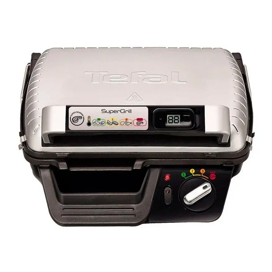 Tefal SuperGrill GC451B12 має два положення – для гриля і барбекю. Разом з тим він обладнаний індикаторами включення і готовності до роботи, що робить експлуатацію ще зручніше. Рукоятка зроблена з термопластика, тому ви ніколи не обпечетеся.