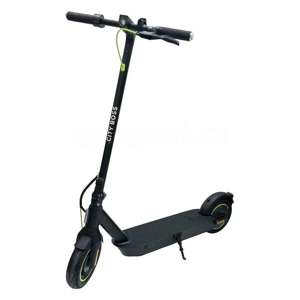 City Boss RS500зі сплаву авіаційного алюмінію і магнію витримує навантаження до 120 кг. Таким чином, він відповідає суворим стандартам безпеки. Для кращої керованості та стабільності на високих швидкостях кермо подовжено до 50 см. З міркувань безпеки рекомендований вік користування скутером - від 14 років.