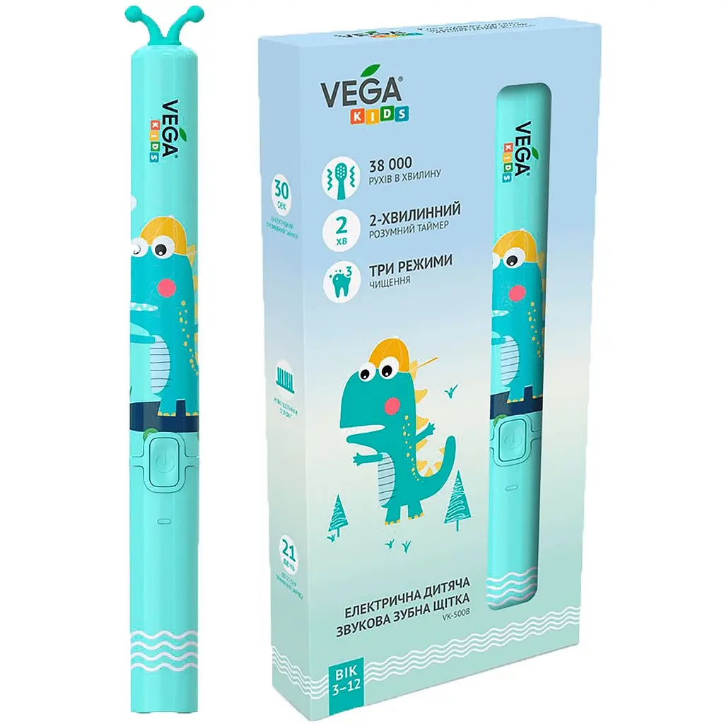 До кінця акції 5 днівЕлектрична звукова зубна щітка Vega Kids - просте та якісне очищення дитячих зубів та ясен без зусиль та навичок. Дитячий дизайн у вигляді дракоші перетворює нудну чистку зубів на захопливе заняття.