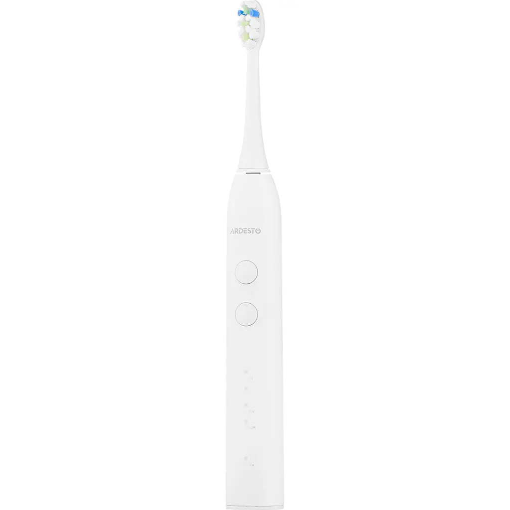 Електрична зубна щітка Ardesto ETB-112W - ідеальний вибір для тих, хто цінує якість та зручність. Вона оснащена середньо-м'якою щетиною насадок DuPont, що забезпечує ефективне очищення зубів, при цьому залишаючись дбайливою до ясен та ротової порожнини. Ультразвукова технологія чищення у поєднанні з високою частотою вібрації до 40000 разів на хвилину гарантує значно краще видалення зубного нальоту та каменю в порівнянні зі звичайним чищенням.