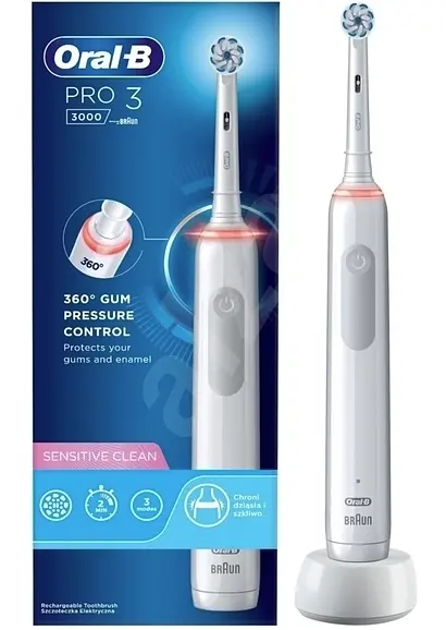 Електрична зубна щітка Oral-B (Орал-Бі) Pro 3-3000 Sens Clean більш ефективно очищає ротову порожнину в порівнянні зі звичайною мануальною зубною щіткою.
