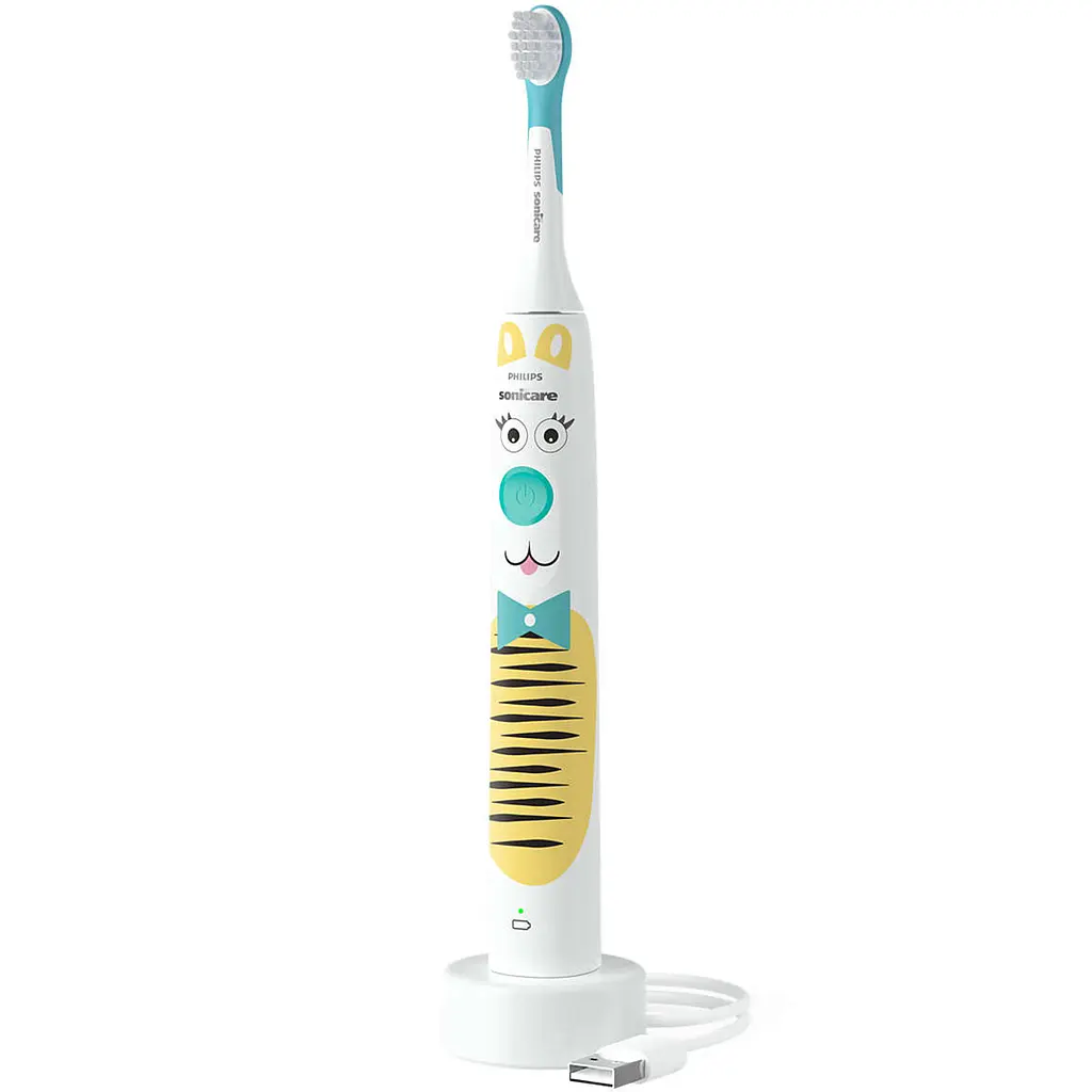 Електрична зубна щітка Philips Sonicare For Kids Design a Pet Edition HX3601/01 допоможе дітям виробити здорові звички чищення зубів. Ця щітка дбайливо доглядає за зубами та яснами, що ростуть, і допомагає запобігти карієсу. Спеціальна версія щітки "Створіть власного домашнього улюбленця" має в комплекті веселі наклейки, щоб діти могли прикрасити її на свій смак.