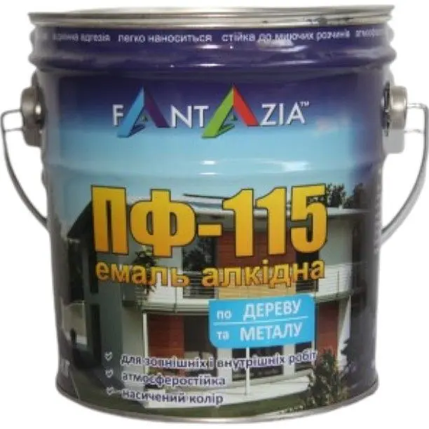 Емаль ПФ-115, 2.8 л, Fantazia (червона) Стійка до атмосферних впливів. Для зовнішніх і внутрішніх робіт. Предназначена Для захисного та декоративного оздоблення металевих, дерев’яних та інших поверхонь. Підходить для фарбування батарей і радіаторів, тому що витримують високі температури. Спосіб застосування: Ретельно перемішати, при необхідності додати розчинник - вайт-спирит, сольвент або їх суміш у співвідношенні 1:1. При наявності поверхневої плівки, її необхідно видалити. Пофарбована поверхня повинна бути сухою, очищеною від пилу, жиру, іржавих та окалічених. Старі лакоксові покриття, які відсилаються, необхідно усунути. Емаль наноситиме спосіб розпилення, валиком або пензлем. Перед нанесенням наступного шару впевніться, що поверхні повністю висохли. Час висихання - 24 години при температурі +20 °С і відносної вологості 65%. Розхід: 80-120 г/м2 при одноразовому покритті, залежно від кольору і поверхні. Застережливі заходи: Під час оздоровчих робіт і після їх закінчення ретельно провітрювати приміщення. Для захисту рук використовувати гумові рукавички. Зберігання: Зберігати і перевозити у щільно закритій заводській тарі, щоб захистити від вологи та потрапляння прямих сонячних променів.