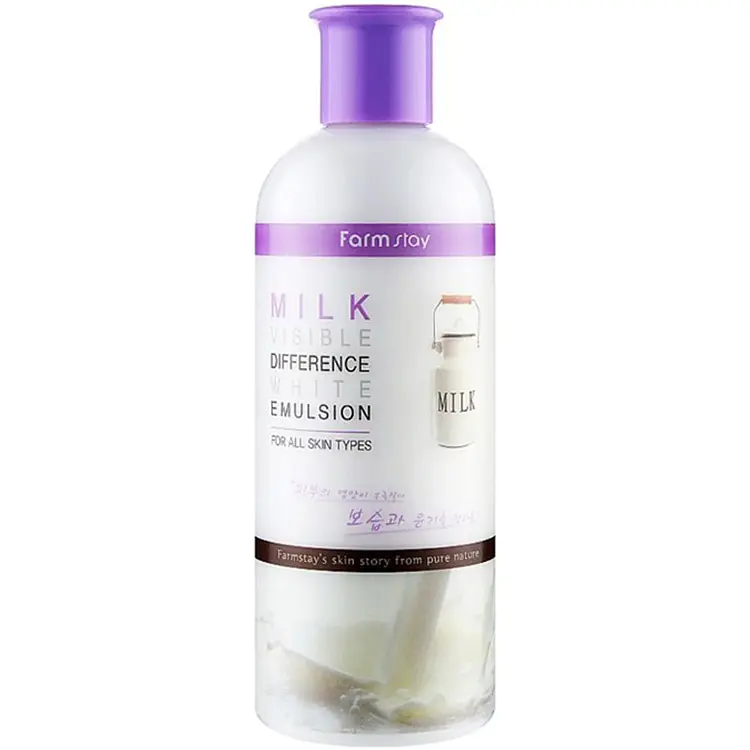 FarmStay Visible Difference Moisture Emulsion Milk - поживна відновлююча емульсія для обличчя на основі молочних витяжок. Незамінна для піклування про шкірний покрив незалежно від сезону, зберігає його здоров'я, надає свіжого доглянутого вигляду. Завдяки унікальній косметичній формулі ефективно працює проти запалень, відновлює тонус, забезпечує живлення та гідратацію. Навіть нетривале застосування дозволяє оцінити позитивні зміни: шкіра набуває гладкості, шовковистості, стає світлішою, зменшується вираженість пігментації, йдуть висипання, подразнення. Приємний аромат та легка текстура забезпечують максимальний комфорт при використанні цього косметичного засобу.