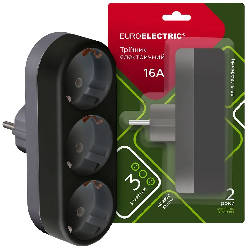 Мережевий трійник Euroelectric - це пристрій, який дозволяє під'єднати кілька електричних приладів до одного джерела електроживлення, призначений для забезпечення доступу до електроенергії в домашніх умовах або на робочому місці. Розетки мають заземлення і підходять для використання зі стандартними електричними приладами.