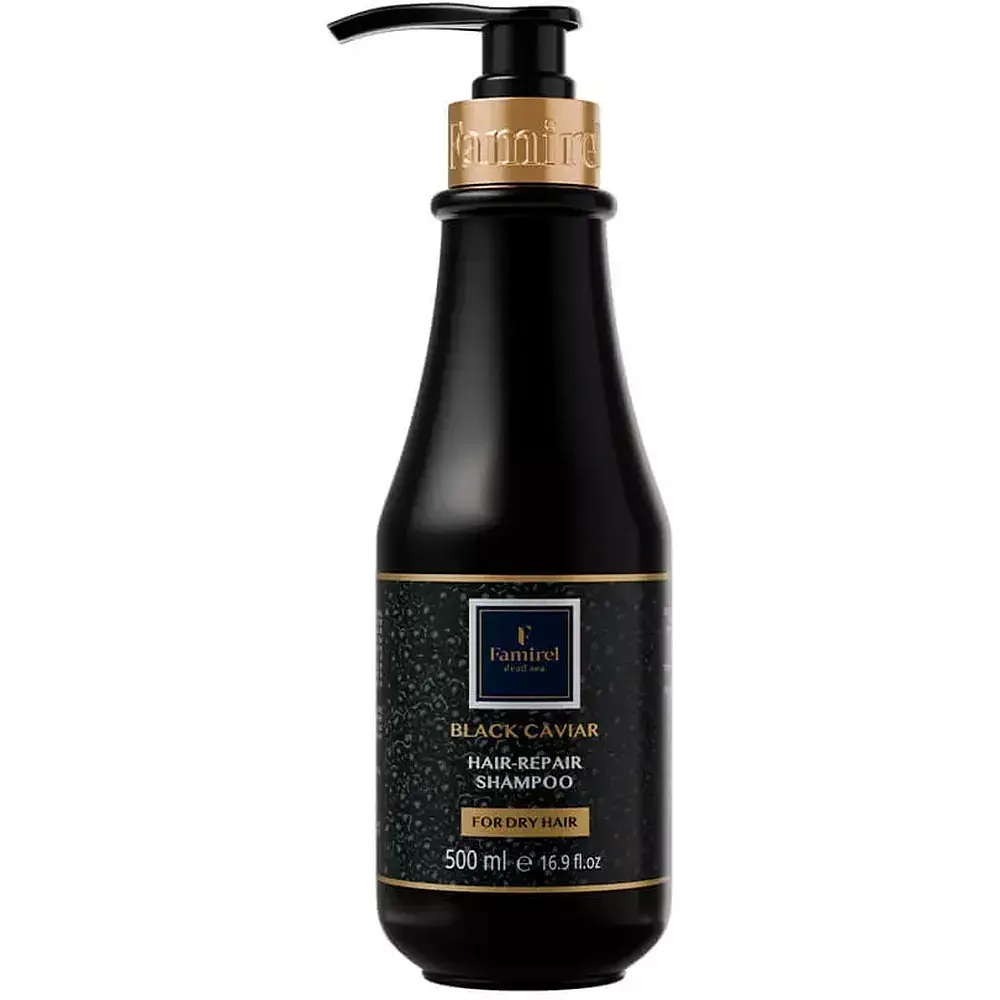 Шампунь Black Caviar Famirel розроблений для догляду за сухим волоссям, яке піддавалося процедурам випрямлення, освітлення або фарбування. Містить комплекс поживних компонентів. До складу входять компоненти чорної ікри та антиоксидант гранат, які відновлюють і оживляють волосся, надаючи йому здоров'я і силу. Натуральні компоненти інтенсивно живлять шкіру голови, забезпечуючи глибоке зволоження і відновлення. Шампунь не тільки ретельно очищає і пом'якшує ваше волосся, але також готує його до подальшого догляду за допомогою кондиціонера або поживної маски.
