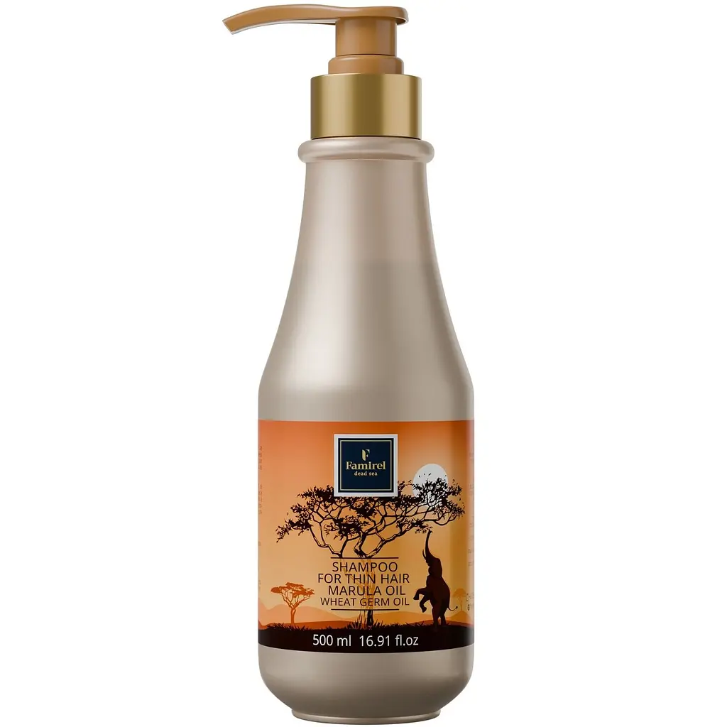 Шампунь Famirel Marula Oil для тонкого волосся з олією зародків пшениці та олією марули забезпечує ніжне очищення і здоровий зовнішній вигляд, надаючи тонкому волоссю сили, об'єму та еластичності. Олії та природні компоненти зволожують і живлять шкіру голови, зберігаючи природний блиск.